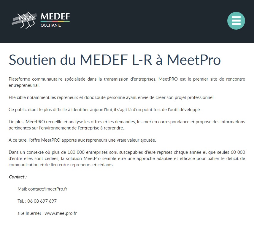Comment mettre en relation des personnes souhaitant céder leur entreprise et celles qui veulent se lancer dans l'aventure entrepreneuriale ? C'est le défi relevé avec brio par la start-up Meet PRO.